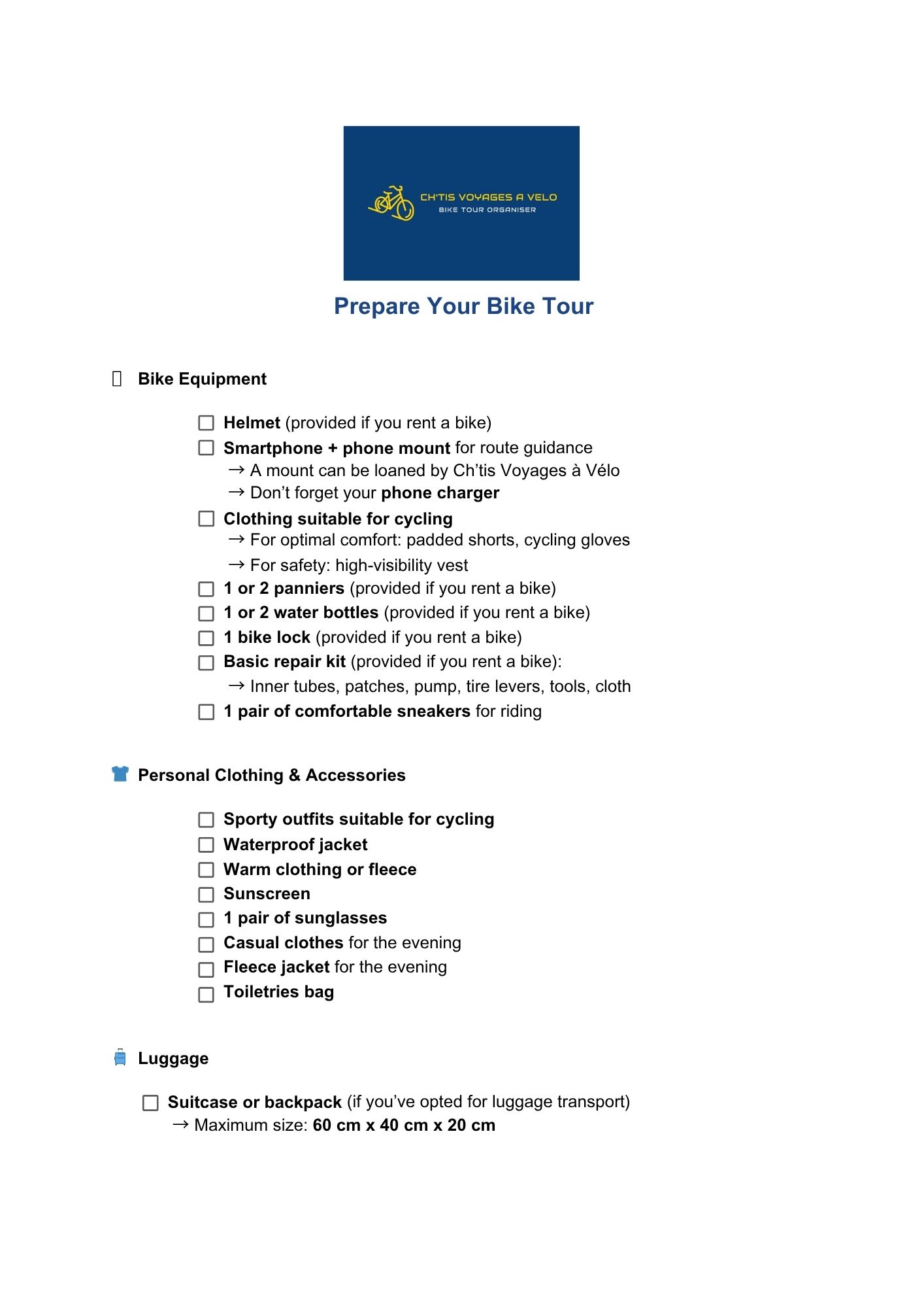 Preparing for your cycling trip is a key part of ensuring an enjoyable and stress-free experience.